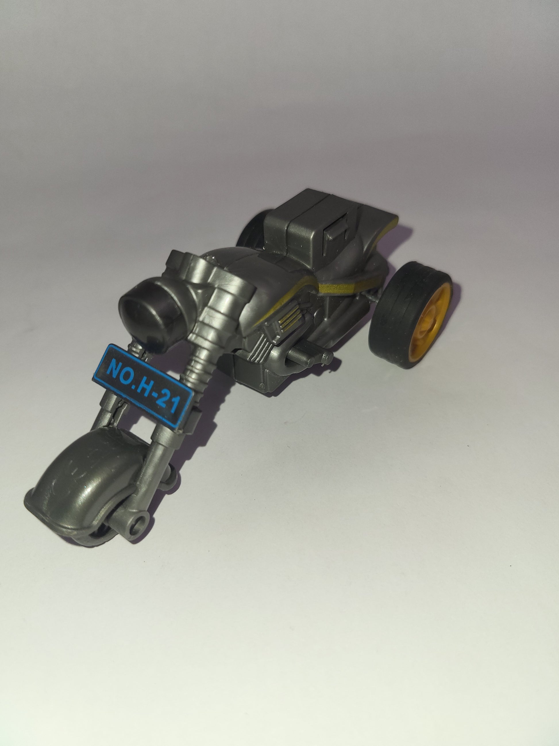 Police motorcycle toy – “NO.H-21” blue license plate